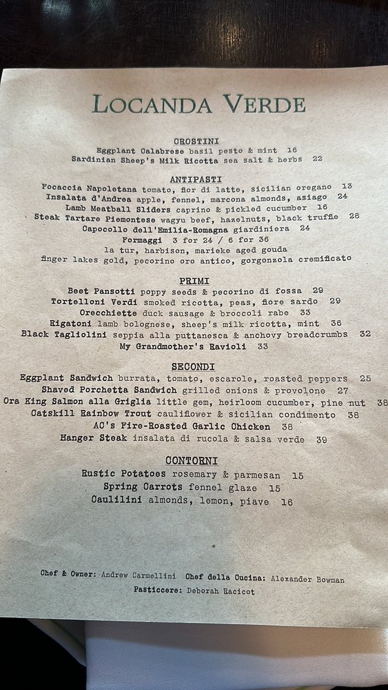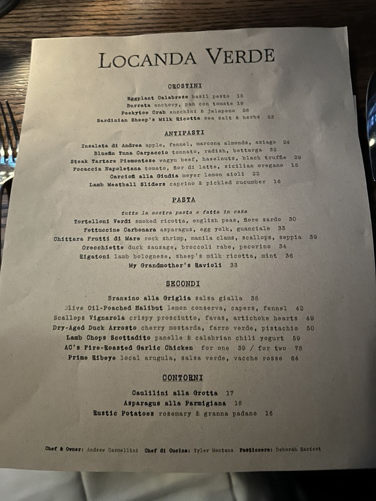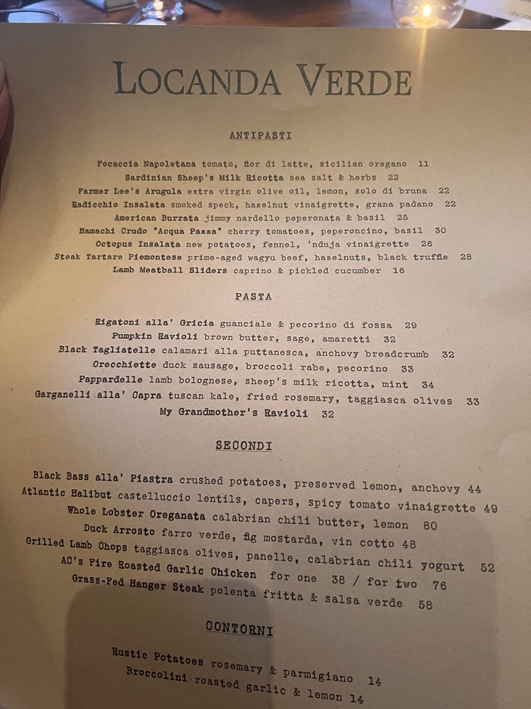 Locanda Verde, located in New York City, offers a vibrant atmosphere with a rustic yet upscale urban Italian vibe. The menu showcases a variety of Italian dishes, with highlights like the mushroom agnolotti, spaghetti alla gricia, and seafood chittara frutti di mare. The food is described as flavorful and delicious, with the mushroom agnolotti being a standout dish for its rich mushroom taste. Despite slightly smaller portion sizes, the prices are considered reasonable given the high-quality ingredients and preparation. The staff is praised for their attentive service, with a well-oiled machine operation ensuring a pleasant dining experience. Locanda Verde is a trendy, classy spot perfect for brunch or dinner, offering a full bar and a menu that impresses both locals and visitors alike.